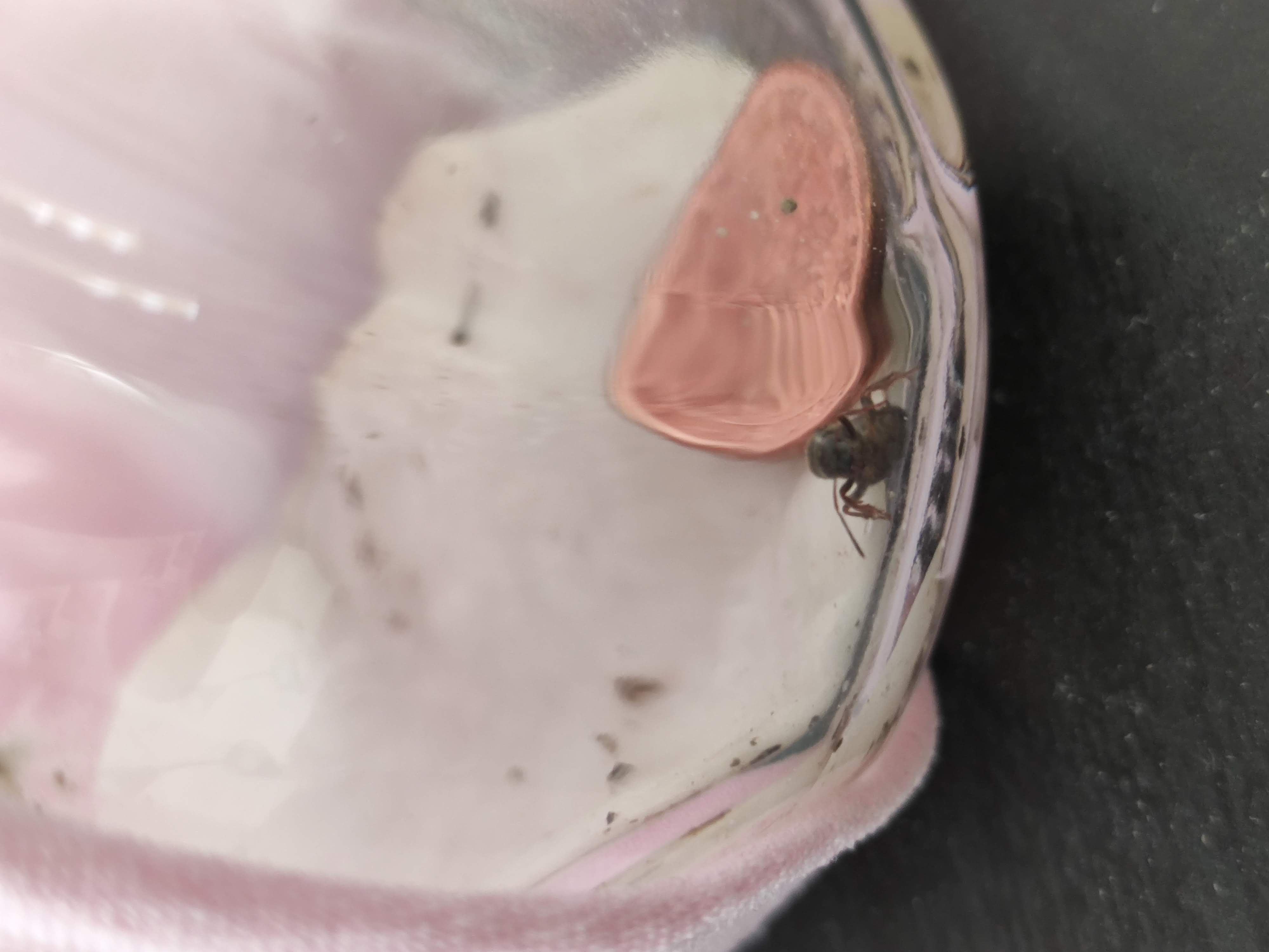 Dannach habe ich das Glas nochmals genauer untersucht und konnte, auch mit Lupe, nirgendwo Eier finden. Ich denke, dass die Umgebung ihr nicht so gut gefallen hat um dort ein Nest zu gründen. Hoffentlich ist das jetzt anders 😃. (Go Ameisanien!)