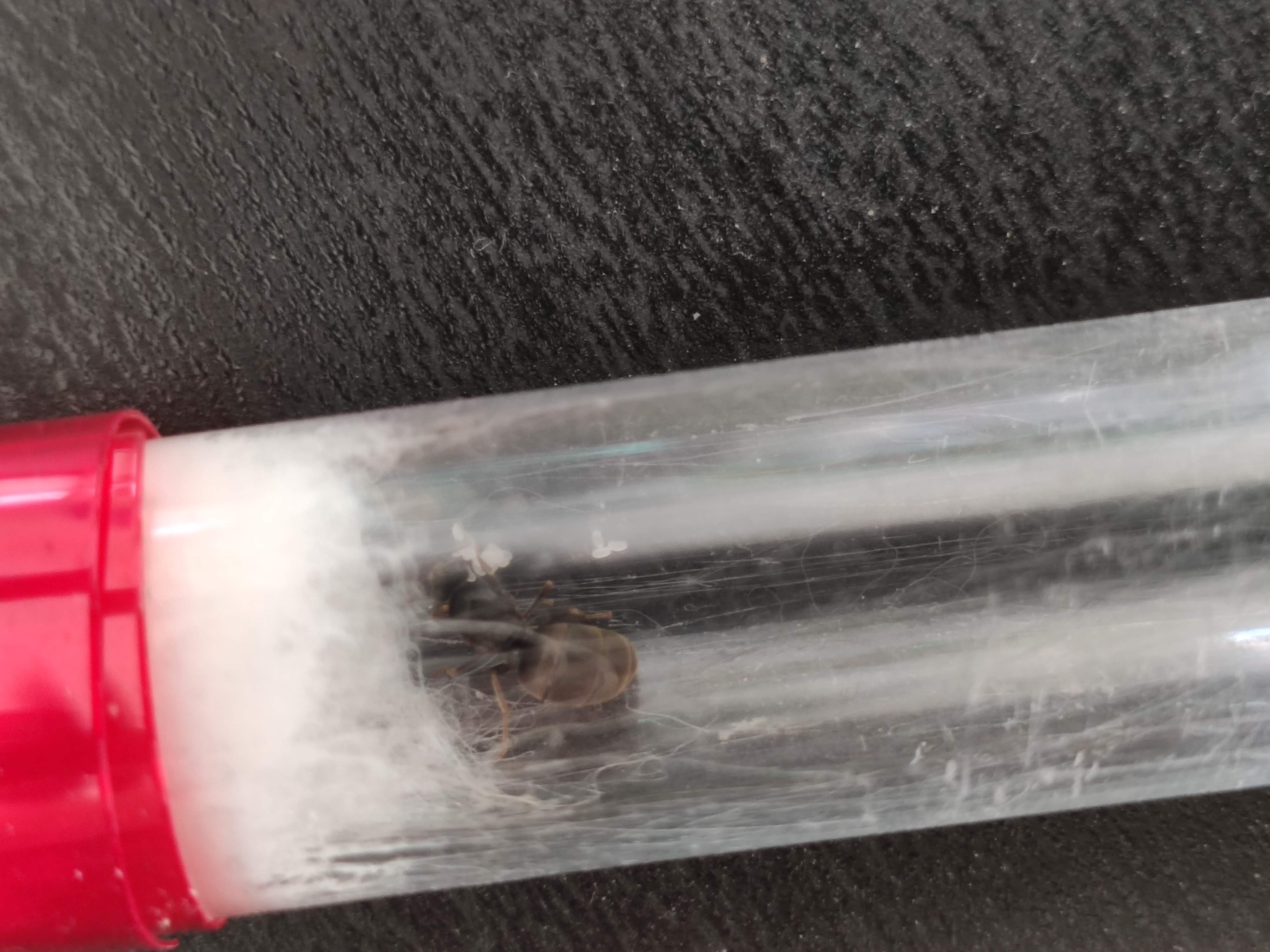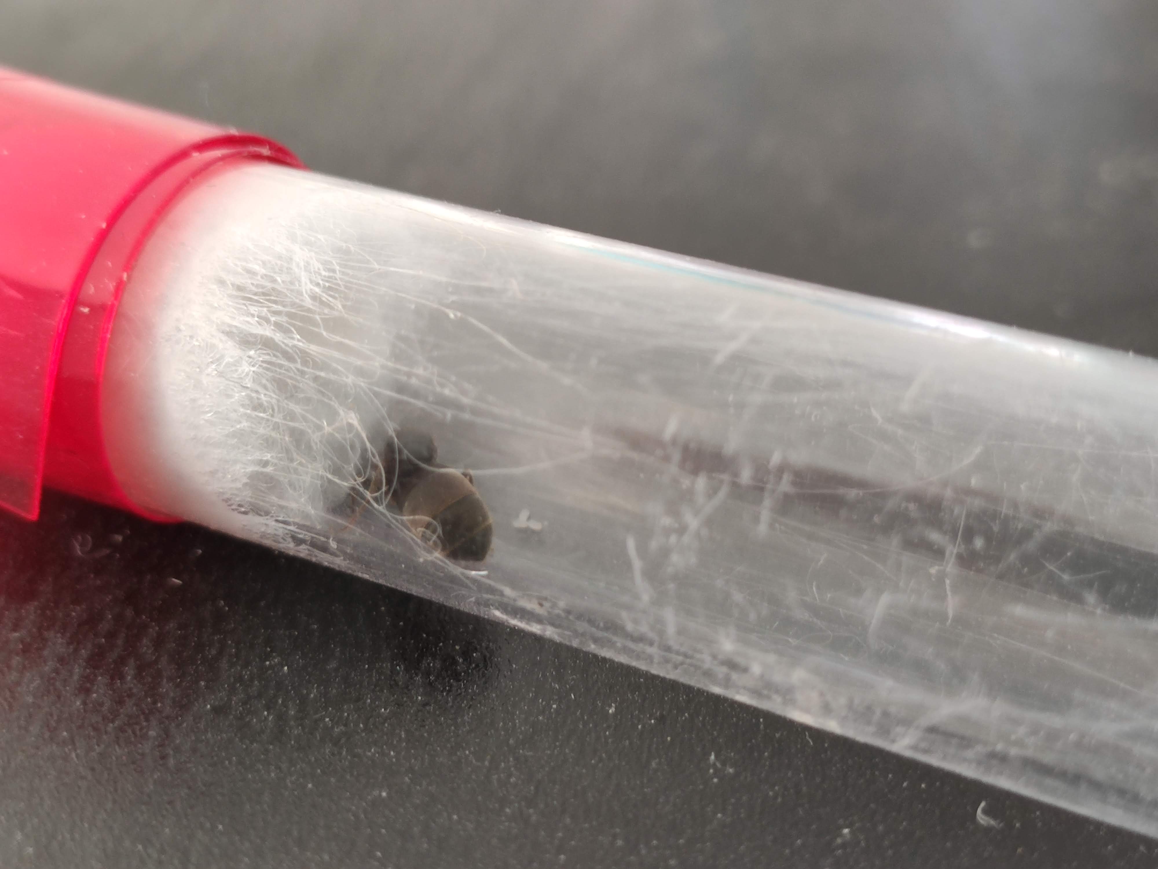 Derzeit komme ich beim Zählen insgesamt auf 11-12 Eier, damit hat Zenobia den Anfang quasi geschafft. Vermutlich wird sie nicht mehr viele Eier legen, sondern nun den Fokus darauf legen, ihre Brut auch zum schlüpfen zu bringen. Anscheinend liegt die Größe einer Basiskolonie bei ca. 10-20 Arbeiterinnen. Da Zenobia sich und ihre Brut derzeit vom Rückbau ihres eigenen Flügelmuskelgewebes ernährt, hat sie fast das Maximum erreicht, das damit stemmbar ist. Sobald die Jung-Arbeiterinnen geschlüpft sind und die Ernährung von Kaiserin Zenobia und des Nachwuchses übernehmen, wird Zenobia wieder mehr Eier ablegen.