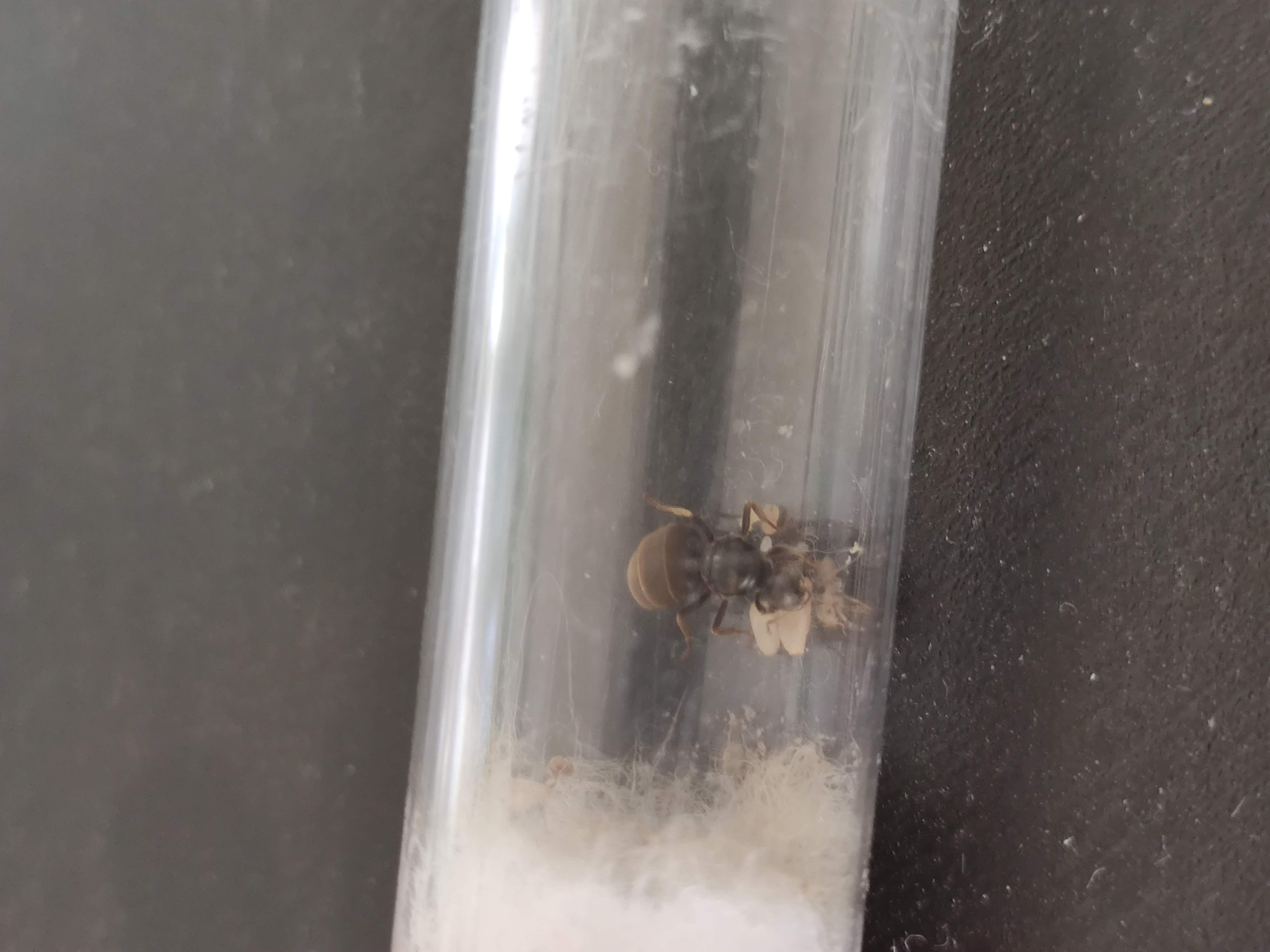 Der Umzug ins Formicarium sollte jetzt von statten gehen, aber heute habe ich leider noch keine Zeit und die beiden müssen sich wohl noch bis Abends gedulden.